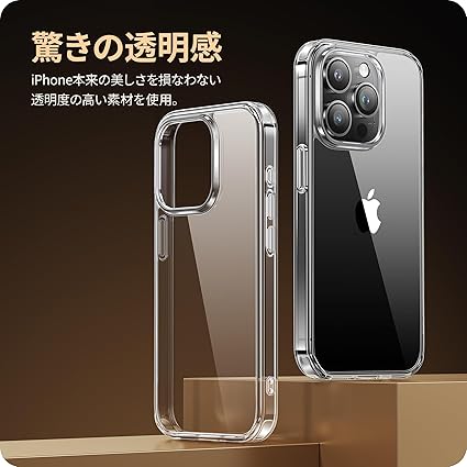 NIMASO ケース iPhone15Pro用 クリア ケース 黄変防止 耐衝撃 米軍MIL規格 SGS認証 PC背面 傷つけ防止 バンパー