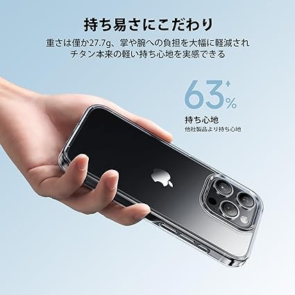 ・【極々透明感・本体の高級感満喫】高透明度ダイヤPC素材を厳選採用、iPhone15 Pro本来の美しさを損なわなず、高級感を思い存分楽しめる!さらに素材の芯まで最新耐黄変技術「CRYS-GEL」分子を浸透する事でクリアケースのよくある変色劣化を徹底解消!抗UV性LCS認証番号:LCS210425017AR200|認証機関:LCS Compliance Testing Laboratory|認証時間:May 08, 2022【対応機種:iPhone15Pro用】