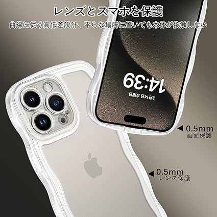 BENTOBEN iPhone 15 Pro ケース クリア TPU 韓国 可愛い ウェーブ ソフト 滑り止め 薄型 軽量 耐衝撃 おしゃれ