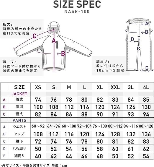 ・【2020年春】より満足にお使いいただくために素材の改良を行いました。【NASR-100】防水、伸縮、ドライ素材の圧倒的スペック!スノーウェアメーカーがノウハウを生かし、企画・製造した超撥水(耐水圧20,000mm)レインウェア上下セット