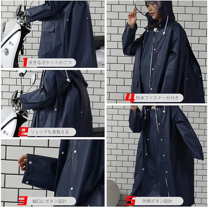 ・【ユニークな防水デザイン】バ側のひもが付きデザイン、自由調整できるので、大風でも安心!雨の侵入を防ぐため袖口はゴム固定性が高い、風でめぎり上がるが無し!前の部分に大きめのポケツトが2つついているから、ちょっとした小物を入れておくのに便利。後ろのボ夕ンを開ければリュックも背負える!収納袋を付いており、携帯しやすい!とても便利!