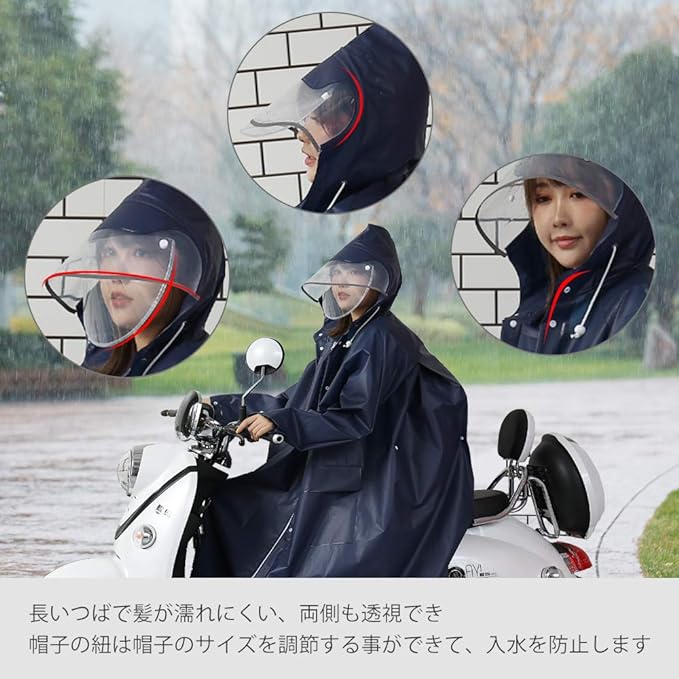 ・【 大きな帽子&丈夫なバイザー】大きな帽子で髪が濡れにくい。 帽子はナイロンの紐で固定できます、帽子のサイズを調節し、入水を防止し、首の保護もできます。計算しつくされたバイザーで視界良好を確保。自転車乗車時も安心安全です。女性に嬉しい化粧崩れも防げます。履けばほとんど濡れません。もちろん散歩や歩 行用にも使えます!