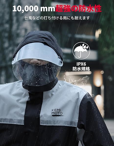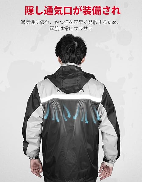 [KEMIMOTO] 背中隠し通気口&IPX6級防水性 レインスーツ メンズ バイク用レインジャケット カッパ 上下セット レインウェア レ