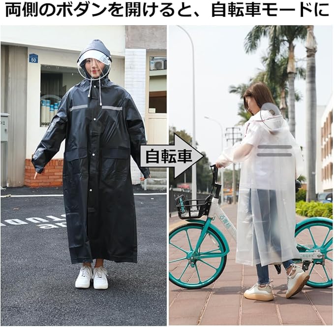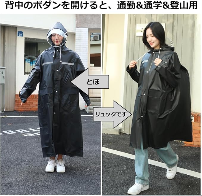 ・【安全で快適なアウトドア体験】高解像度デタッチャブルキャップ: 雨の中でもクリアな視界を実現する、取り外し可能な高解像度のダブルレイヤーフード。前後の反射テープ: 暗闇で発光し、周囲の車や歩行者に存在を知らせ、事故を防ぐための前後に配置された反射テープ。夜間や暗い環境での視認性を向上させ、あなたの安全を確保します