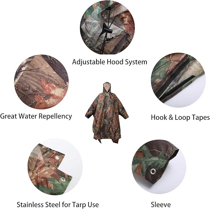 ・►[大容量&多機能]:90Lのバックパックでレインコートを着用でき、しゃがんで自由に走ることができます。レインコートは3 in 1の機能を備えています。レインコートとしてだけでなく、ピクニックマットとしても使用できます。ハイキング用、サイズは95.1X55.1インチで、ロープやポール付きのテントとして使用できます。多機能で幅広い用途があります。屋外でのアクティビティ、キャンプ、ハイキング、釣り、狩猟、サイクリング、遠征、登山、ピクニック