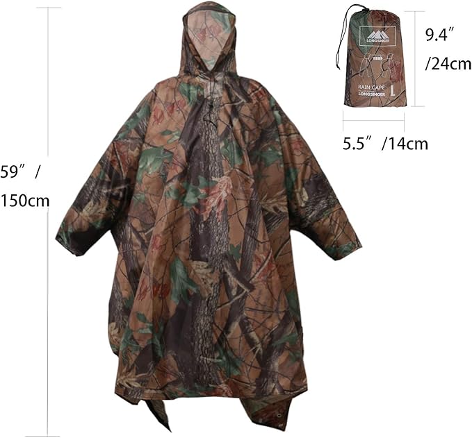 [longsinger] 防水軽量の再利用可能なレインポンチョ、多機能レインコート用の調節可能なフードとアームを備え、ハイキング、釣り、狩猟