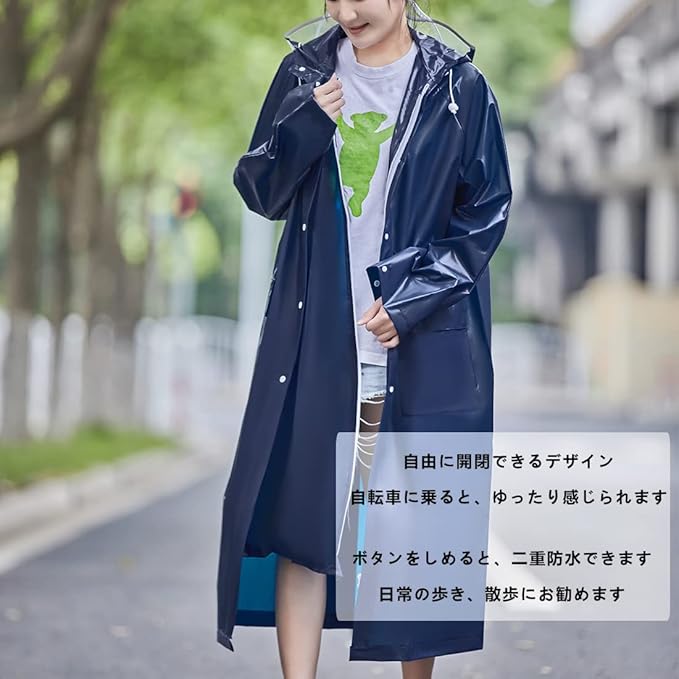 ・【素材構成EVA】: レインポンチョは軽量でコストパフォーマンスが優れます。雨具にとって、匂いがなく、通気性が高く、着心地も良いです。このレインコートは、速乾性があり、PVC透明防水フィルムデザインで、優れた防水機能があり、更に強い光透過率を備えます。