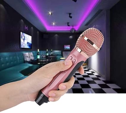 Bluetooth ワイヤレス カラオケマイク 2本 ポータブルスピーカー ホームKTV カラオケ機器 AUX (ピンク)