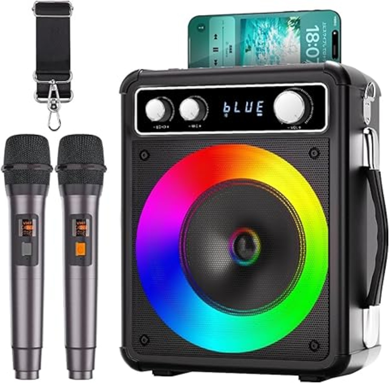 Verkstar カラオケセット 拡声器 家庭用 カラオケマシン ワイヤレスマイク2本 Bluetooth 5.0 カラオケマイク 小型 P