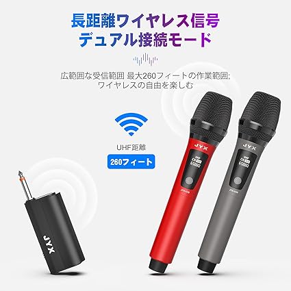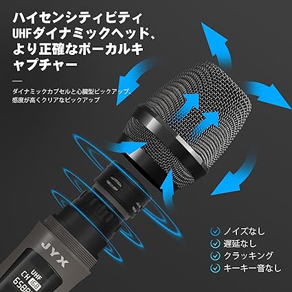 JYX ワイヤレスマイク2本 無線カラオケマイク UHF マイクロフォン 充電式 会議、スピーチ、公演、パーティー、学校運動会などに適用