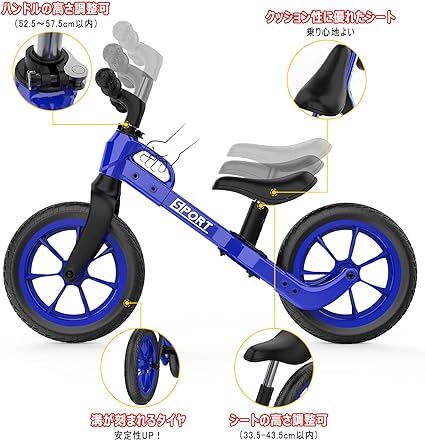 Thinkmax キッズバイク ペダルなし自転車 キックバイク 12インチ 高さ調整可能 子供用自転車 2~5歳 ブルー