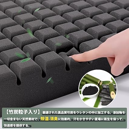 ・【竹炭除湿】厳選された高品質竹炭をウレタンの中に加工して除湿.消臭に効果的。汗や湿気を除湿、雑菌の繁殖を抑えてくれ、いつでも座布団の清潔を保つことができます