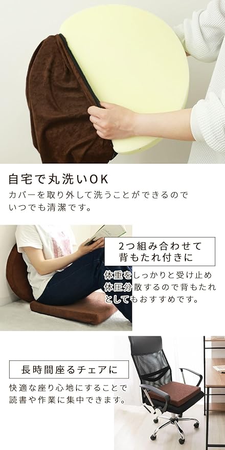 ・【コンパクトサイズ&丸洗いOK】場所を取らないので、使わないときはコンパクトに収納できます。来客時にもサッと取り出せて便利です。カバーを取り外して洗うことができるので、いつでも清潔です。