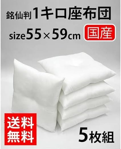 1kg座布団 5枚セット 側サイズ55×59cm 日本製 銘仙判 座布団 ヌードクッション 55×59cm 座布団 カバーは付いておりません