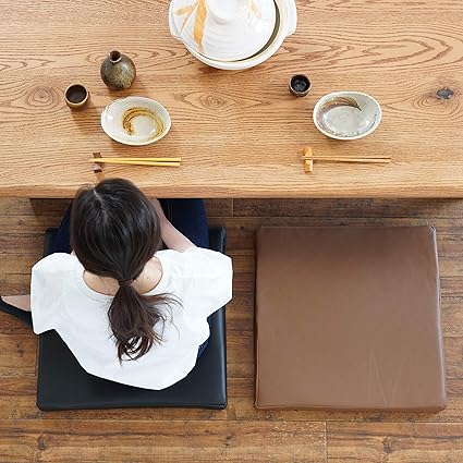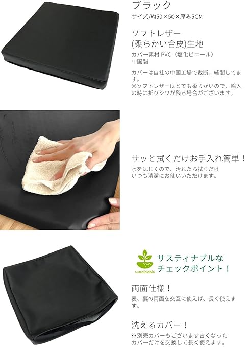 金鵄 レザークッション 低反発 高反発 座布団 コラム 50x50x5 (ブラック, 1)