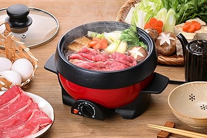 アビテラックス 電気鍋 電気グリル鍋 電気ミニプレート 1人用 1台2役 「煮る」「 焼く」 小型 一人暮らし 深鍋 おしゃれ 着脱式 丸洗
