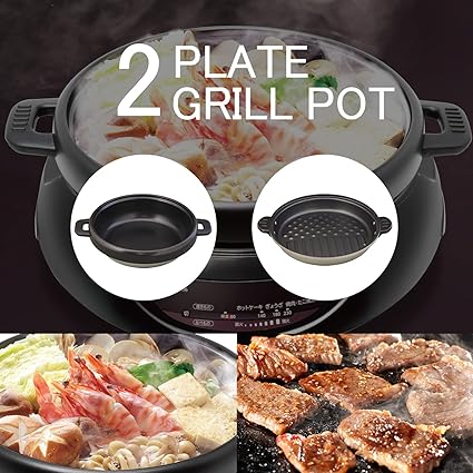 ・[2種類プレート付属] グリルプレート・深鍋 (熱ムラを抑えて蓄熱性が高い)