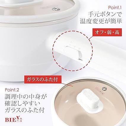 BIEn 電気鍋 電気調理鍋 グリル鍋 ラーメン うどん 目玉焼き お手伝い 受験 夜食 夏場に火を使わない 多機能フライパン 片手鍋 温度
