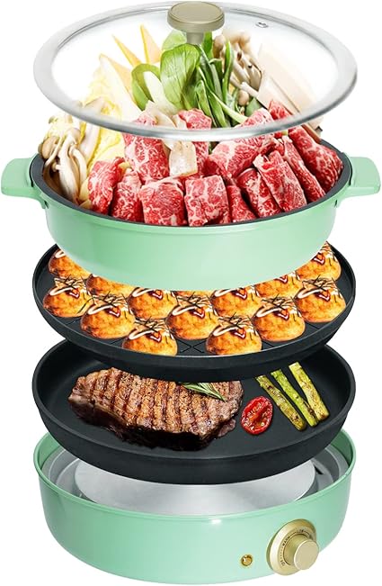 SOLEMOOD グリル鍋 電気鍋 3-in-1 2~3人用 ホットプレート 小型 1200W ほっとぷれーと たこ焼き 焼肉 深鍋 しゃぶ