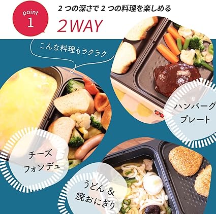 オーム(OHM) 電機 ホットプレート 2WAY 鍋付き 1人用2人用 深鍋&平面プレート 煮ると焼くが一度にできる おひとり様グリル鍋 小