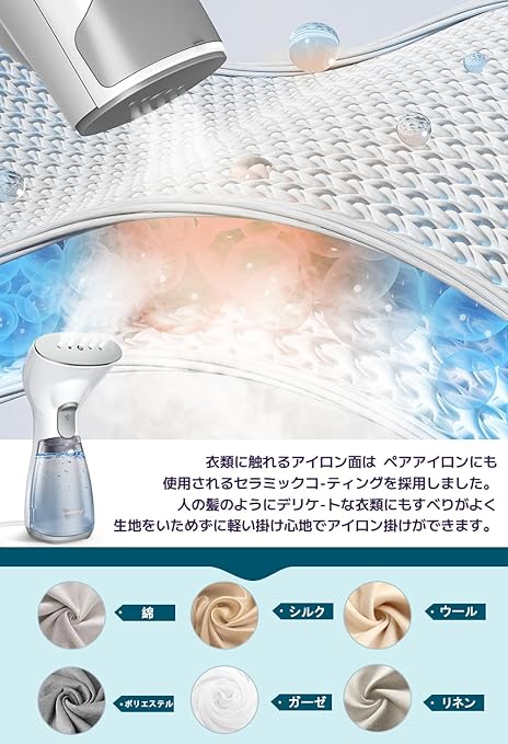 ・強力/超高速加熱/大容量:20秒で素早く予熱でき、800Wの高出力、16g/分の蒸気を強力かつ均一に注入し、衣類の奥深くまで素早く浸透させ、しわを取り除きます。取り外し可能な130mlの大容量水タンクを装備しているため、20分間継続して蒸気を供給できます。衣類から不健康な物質やしわを素早く効果的に取り除きます。