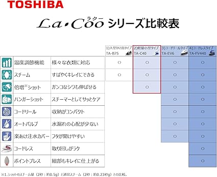 東芝 アイロン スチーム コード付き TA-C40-L 軽量 質量 約0.95kg コンパクト 温度調節 3段階 かけたまま ブルーグレー