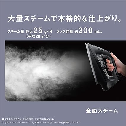 ●業界最強レベルの大量スチームと当社最大アイロン面で本格的な仕上がりに。