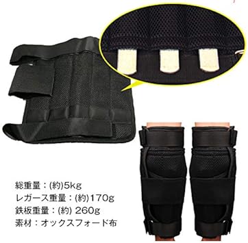 ・【収納サイズ】:(約)30cm×17cm×6cm【総重量】:(約)5kg【レガース重量(1個)】:(約)170g【鉄板重量(1個)】:(約)260g【素材】:オックスフォード生地