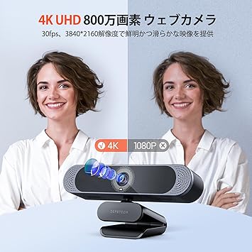 Webカメラ 4K オートフォーカス 800万画素 DEPSTECH ウェブカメラ UHD画質 デュアルマイク内蔵 自動調光補正 USB接続