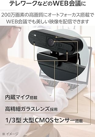 エレコム WEBカメラ フルHD 1080p 30FPS 200万画素 オートフォーカス マイク内蔵 プライバシーシャッター付 1/4インチ