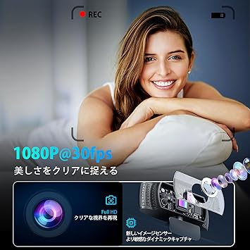 ・【1080P、高解像度および画像強化技術】弊社のwebカメラは、200万画素を備え、高解像度を実現します。F1.8の7枚レンズと1/3インチの裏面照射型イメージセンサーを備えており、一般的に使用される1/5インチセンサーよりもはるかに感度が高くなっています。このウェブカメラはまた、HDR/WDR画像補正技術を搭載しており、光が弱い環境でも高い画質を維持し、自動的に環境光をチェックおよび調整して、低光状況によるノイズや画像のぼやけを防ぎ、補正します。pc カメラにはさらに30FPSの映像出力も備わっており、ビデオ全体の効果を向上させ、高解像度でスムーズな映像を実現します。