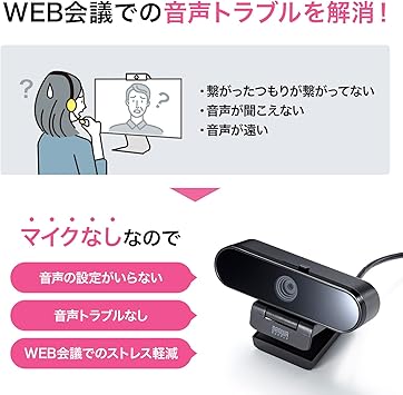 ※サンワサプライではUSBカメラ本体のみサポートしております。ZoomやMicrosoft Teamsなどのビデオチャットソフトウェアのサポートは一切行っておりません。