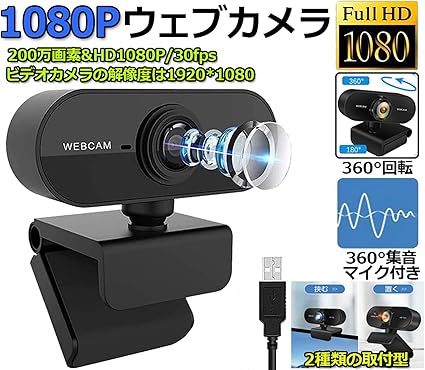 【webカメラ 1080p高解像度・120広角】1080pフルHDと200万画素のwebカメラで、ディテールまではっきりと映され、高い解像度を実現しますまた、120広角レンズを採用し、多人数のオンライン会議でも、歪みなく画面を撮れます 【webカメラ 内蔵マイクによる高音質】web カメラ は全方向マイクを搭載し、どの角度からも明確に収音できますまた、web カメラのマイクはノイズキャンセリング機能も揃い、通話中に雑音を抑えられ、自然かつクリアな音声を相手に届けられます 【webカメラ 固定フォーカスレンズ】フルHDレンズとプレミアム固定フォーカスウェブカメラで、明瞭かつきめ細かい画質を楽しめますオートフォーカスやマニュアルフォーカスの不安定さやあいまいさを心配する必要はありません常に鮮やかで臨場感のあるビデオのストリーミングと録画を利用できます 【webカメラ ドライバー不要高い&高い交換性】 接続したらすぐ使えますWindows XP/Vista/Windows7/8/8.1/10、Mac OS10.4及びMac OS10.4以降などのさまざまなOSが対応され、Skype、LINE、zoomなど様々なソフトが利用できるので 【webカメラ 安心の2年間長期保証】二年間のメーカー保障がございますので、何か不満または問題がありましたら、遠慮なく「販売者に連絡」よりご連絡ください