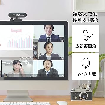 ・複数人で便利な水平83°の広視野と内蔵マイク搭載。Skype、LINE、Zoom、Google Meet、Microsoft Teams、Cisco Webexでの動作確認済み。オンラインセミナーやビデオ会議など、様々なシーンで活用できます。*アプリケーションとの互換性を保証するものではありません