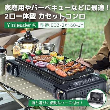 【Yinleader】カセットコンロ 薄型 卓上 強火力コンロ 防風 ブタンガス カセットガスボンベ式 コンパクトサイズ 屋内・屋外兼用 ・