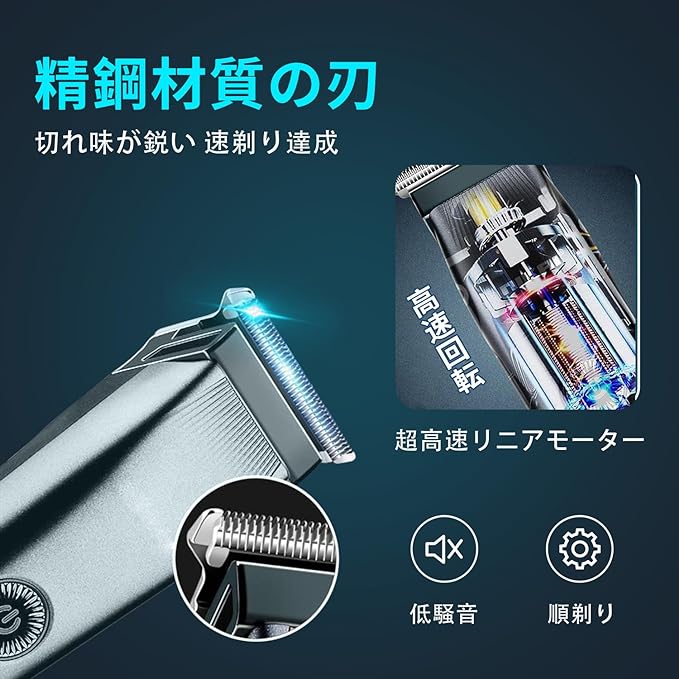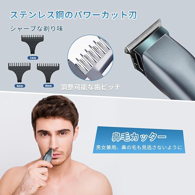 ・【電動ヘアカット/多種類のヘアスタイル】電動ヘアカットハサミヘッドは高品質の鋼材を採用し、強く、鋭利で、髪が詰まったことは一切なしになります。3種類の異なる長さ、交換可能な位置決めコーム、位置決めが正確で、取り付けと取り外しが便利で、坊主頭、1 mm、3 mmと5 mmの4種類の異なる髪型が選択でき、異なる季節の散髪需要を満たすことができます。