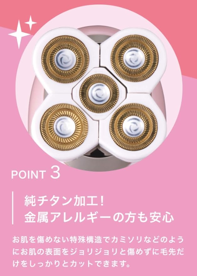 ・【純チタン加工で金属アレルギー対策】お肌を傷めない特殊構造なので、安心してしっかりとカット。刃の耐久力もアップし、長くお使い頂けます
