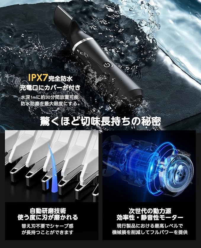 ・【切れ味を長持ち・IPX7防水】航空宇宙材料のコーティングを塗布したボディシェーバーは、刃の耐久性と切れ味を両立しています。自動研磨機能により、刃を交換しなくても常にシャープな剃り味が持続。替刃代が高いカミソリの代替品を探す方に推薦!IPX7基準をクリアした防水設計と、構造刃を外さずに毛クズと皮脂を洗い流せる「目詰まりづらい」ボディ構造で、都度しっかり汚れを取り除きましょう。Leazppyはお手入れ簡単というニーズを深掘りし、洗練された2024革新メンズシェーバー!
