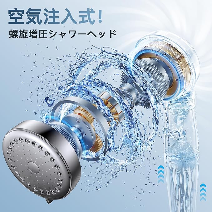 ・【空気螺旋注入で、0.1秒で高水圧の奇跡を実現】低水圧の問題は多くの家庭が直面する課題であり、特に蒸し暑い夏や寒い冬にはシャワーの水流が弱くなると一層困ります。しかし、このシャワーヘッドはドイツの先進的な螺旋空気注入式増圧技術を採用しており、周囲の空気を取り込み、水流と混合させることで、水圧と水流の勢いを増加させます。たった0.1秒で、水流がシャワーヘッドから勢いよく噴射されます。さらに、ハンドルの後ろにある水圧流量調整レバーで、お好みの使い心地を実現します。 ソフトで心地よい水流をお探しの方にも、水圧の低下を改善したい方にも、簡単に対応できます。Eaimiuのシャワー ヘッドは、まるで親切な家庭の執事のように、いつでもお客様に最適なシャワー体験を提供します。