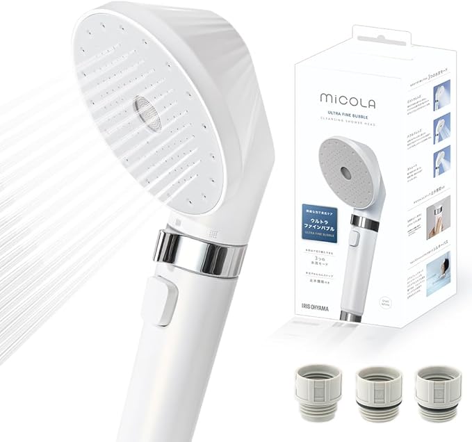 アイリスオーヤマ シャワーヘッド ウルトラファインバブル 美肌ミスト 高洗浄力で約61%UP 汚れを吸着 毛穴ケア 保温保湿 3つの流水モー