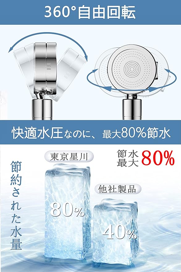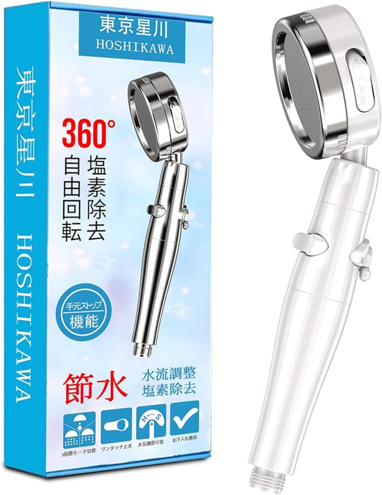 東京星川【新登場】シャワーヘッド 節水80% マイクロナノバブル 3段階モード 手元止水 浄水シャワー 高水圧 塩素除去 360°自由回転