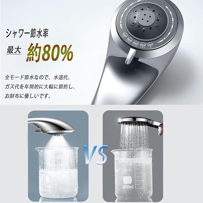 ・【増圧機能&節水機能】強い水流のある高圧シャワーは密度高いウォーターパルスを生み出し、シャワーのニーズをすべて 満たせます!極細水流シャワーヘッドのノズル部分は80% ほどの節水を実現でき、水道代を節約します。