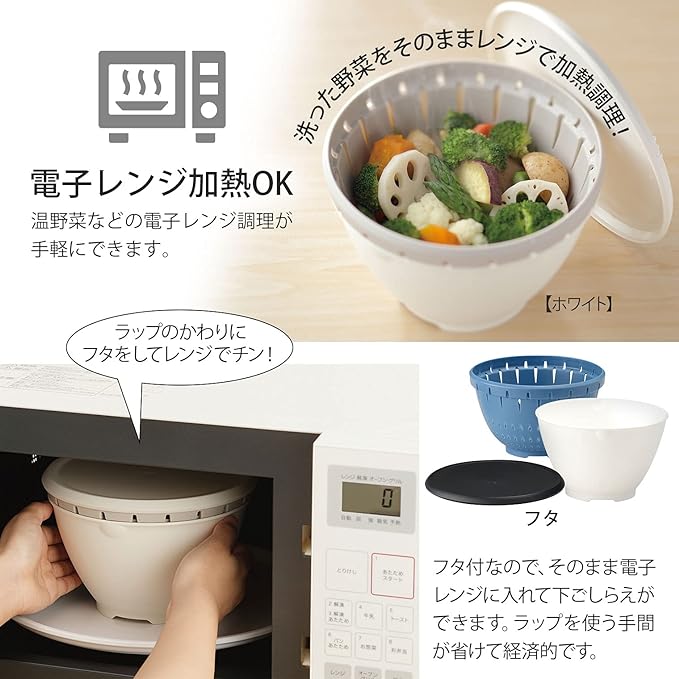 リス ザル ボウル セット ふた付きボールコランダー 2.6L L ホワイト 22cm リベラリスタ 電子レンジ対応 日本製