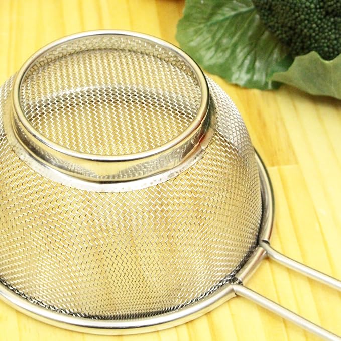 ●業務用ステンレスざる専用メーカーのこだわりでつくった、お鍋にかけて使える便利な家庭用ストレーナーざる