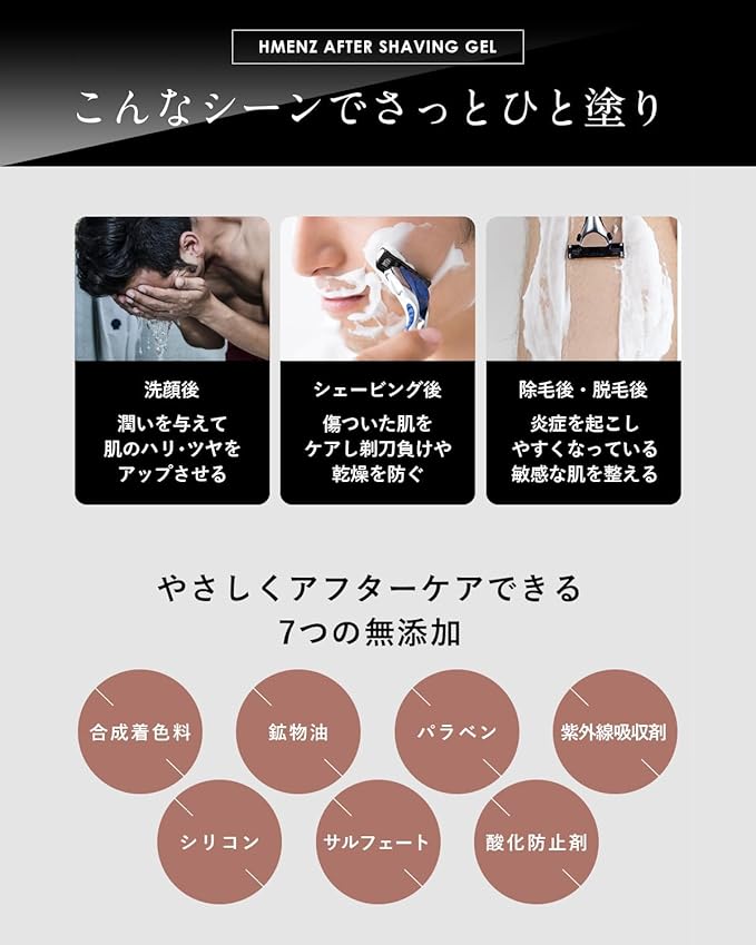 ・【こんな方におすすめ】アフターシェーブケアを探している方、カミソリ負けしやすい方、パパッとスキンケアを終わらせたい方、除毛や脱毛を行っている方
