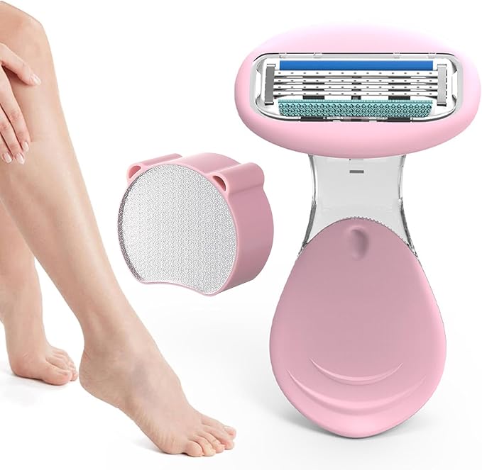 ・【2点セット】パッケージ内には脱毛ナイフ1本、かかと用剃刀1本が含まれています。カラー:ピンク。替え刃が2本付属しています。2つを組み合わせて使用することでさまざまな要求に対応し、非常に使いやすいです。