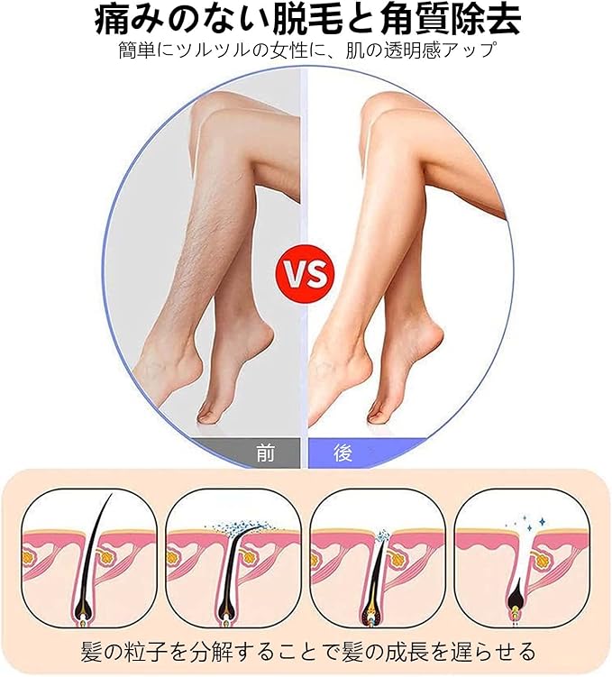 クリスタルヘアイレイザー 脱毛器 男女兼用 家庭用脱毛器 痛みなく 便利 脱毛道具 除毛器 無痛脱毛 角質除去 繰り返し利用 コンパクト き
